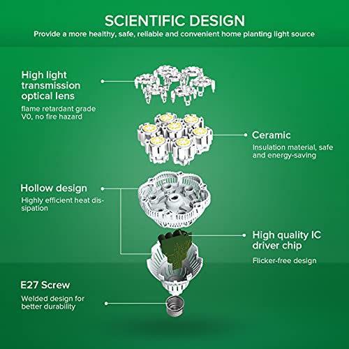 【Eenvoudig te installeren】 Past op een standaard E27-fitting, schroef hem gewoon in uw bureaulamp, geen speciale lampvoet nodig. Dekt tot 2,47-4,20 vierkante voet wanneer hij wordt gemonteerd op 18 “-24” hoog boven de planten. Verlichtingstijd variërend van 10 uur tot 12 uur, afhankelijk van verschillende planten.