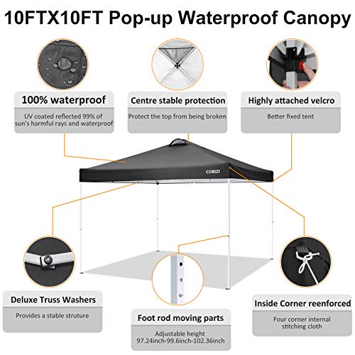 Specification: cobizi Paviljoen 3x3m, waterdicht vouwpaviljoen met 4 zijwanden, pop-up framedesign, metalen steunen, UV-bescherming 50…
