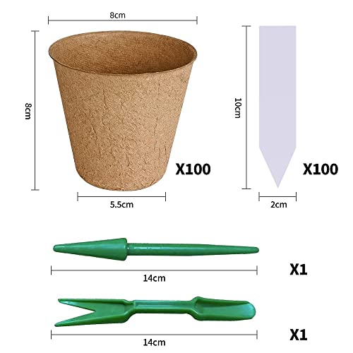 Plantenpotten Specificaties: 100 x zaailingbekers + 100 x etiketten (elk 50 voor T-vormig en pijlvormig), het aantal is voldoende voor dagelijks gebruik.