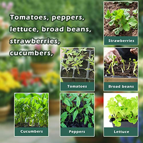 Perfecte maat: Elke cel heeft een lengte van 4,3 cm en een breedte van 4,7 cm. Deze zaadbakken zijn geschikt voor het planten van fruit, groenten, bloemen, aardappelen, tomaten, paprika’s, aubergines en andere planten en groenten. Alvorens naar een tuin of een grotere pot te verplanten, heeft elke cel voldoende ruimte voor de zaailing om een goed wortelstelsel te ontwikkelen.